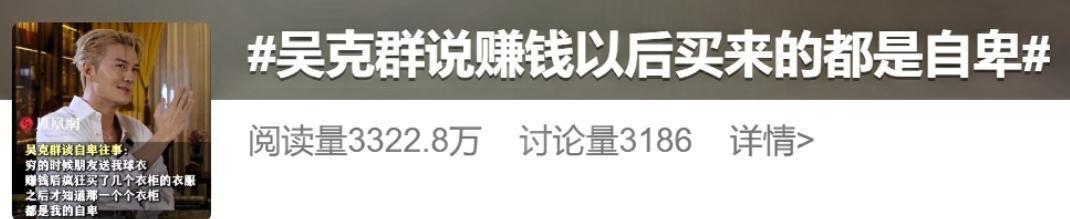 一个关于吴克群的故事,像一场慢火煎熬的成长戏。成名后买衣服,塞满好几个衣柜,真不是为了穿,是为了证明自己不再是那个穷小子。起初的他没想这么多,只想用东西填补心里的空洞,像是用高对比的颜色盖住曾经的黑暗。后来才明白:自己买的并非喜爱,而是自卑的影子在作祟。